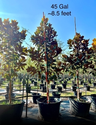 - This strong evergreen has the classic Magnolia leaf shape—glossy green on top and fuzzy brown on the bottom.